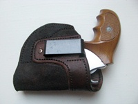 Smooth inside to aid in drawing gun and rough outside to keep holster from moving